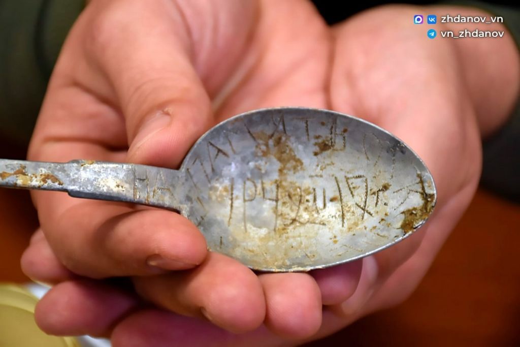 Фото: отряда «Поиск» ХАУ – это аббревиатура Харьковского артиллерийского училища противотанковой артиллерии, Белёв – это родной город бойца, Фергана – ХАУ с началом войны эвакуировали в этот узбекский город. Грачёв жил в городе Белёв Тульской области на улице Малая Горная, 29. Его маму звали Надежда Александровна Грачёва. В Тульском облвоенкомате он значится, как пропавший без вести. Поисковики постараются отыскать родственников. Имя третьего погибшего пока установить не удалось, при нём нашли только ложку с надписью: «На память Коле от Пети».