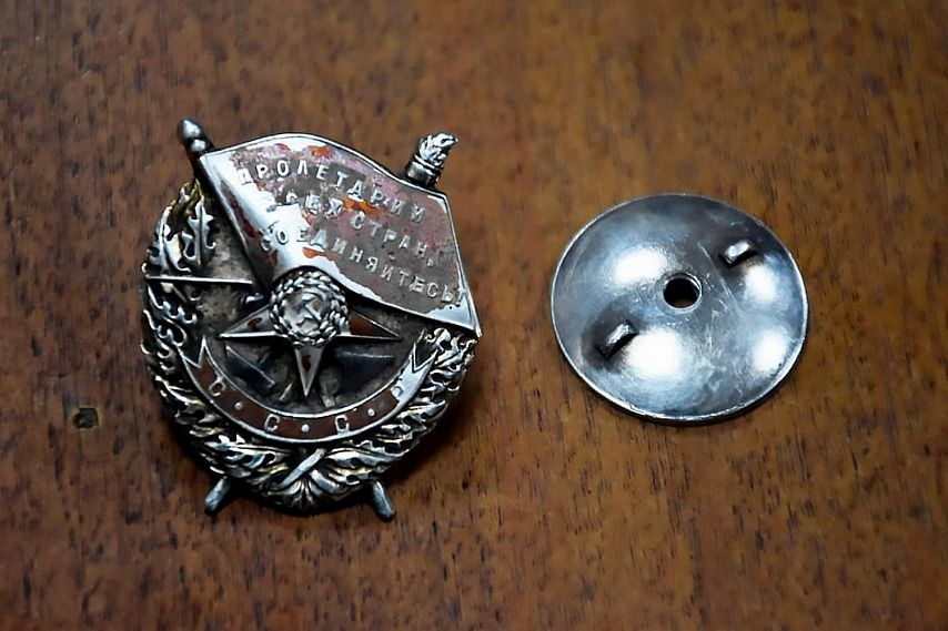 Фото: с сайта «Память народа» Причём сам орден оказался со сложной историей – он был изготовлен в 1933 году из серебра для награждения участников боёв с басмачами в Средней Азии, но, вероятно, был изъят у первого владельца во время репрессий и вновь вручён в 1941 году.